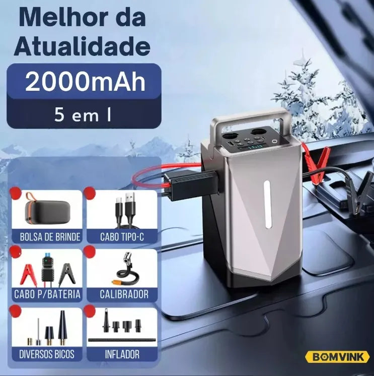 BOMVINK BOM-8910 oferece autonomia, segurança e praticidade em qualquer situação. Com funções de auxiliar de partida, compressor, soprador e sugador, é a solução ideal para motoristas, viajantes e profissionais que não podem perder tempo com imprevistos.