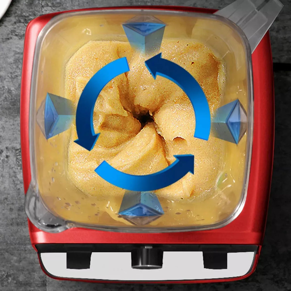 As 6 lâminas de aço inoxidável oferecem alta durabilidade e corte preciso. Capaz de moer grãos, gelo e alimentos fibrosos com extrema eficiência.